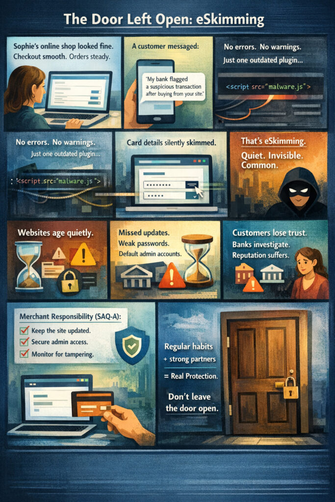 Sophie’s online shop was a perfect example of this. A small business she had built with care, a checkout that felt smooth, a routine she trusted. Then one morning, a message arrived from a customer: “My bank flagged a suspicious transaction after buying from your site.”